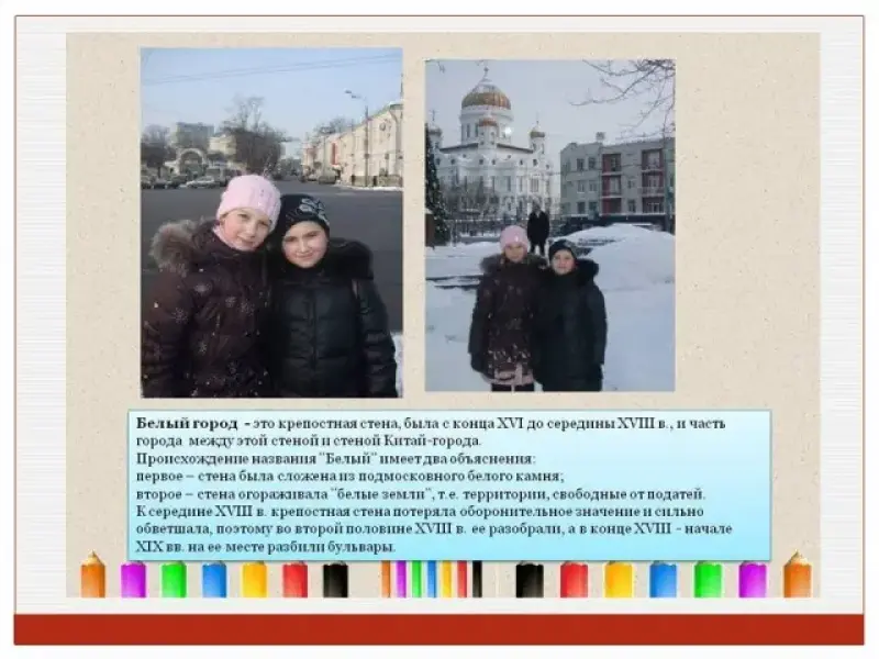 Внутри современного Садового кольца находятся и Кремль, и Белый город, и старинный район Арбат. Эти улицы видели много событий, которые вошли в историю и в учебники истории. Жаль, что здания, деревья, реки не могут рассказать, о том, что оно видели.