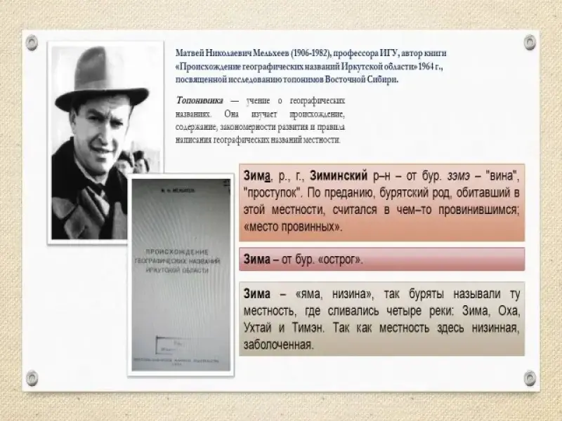 - Мельхеев М. Н. (1964) "Происхождение географических названий Иркутской области"