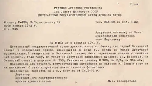 Уже этот уникальный исторический документ дает основание сделать вывод, что зиминское поселение, возможно, возникло значительно раньше.