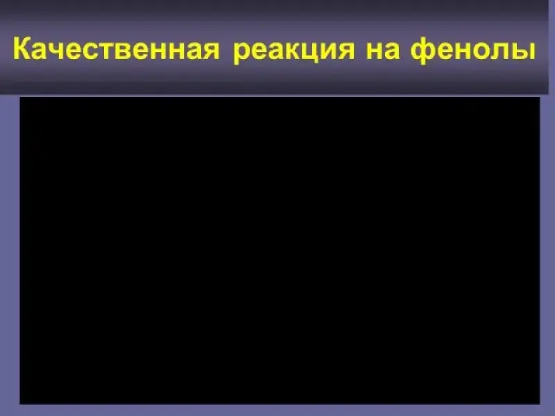 Качественной реакцией на фенол и его гомологи является образование окрашенных комплексов с раствором хлорида железа (III). (Слайд 33, 34).