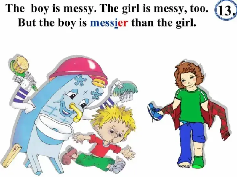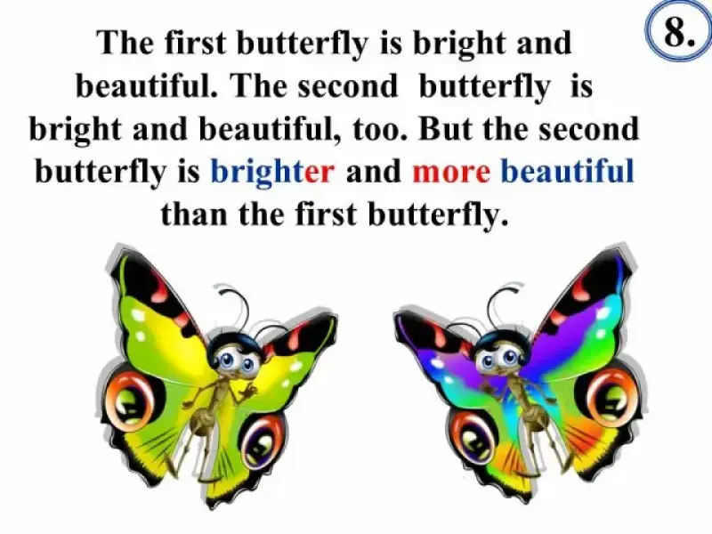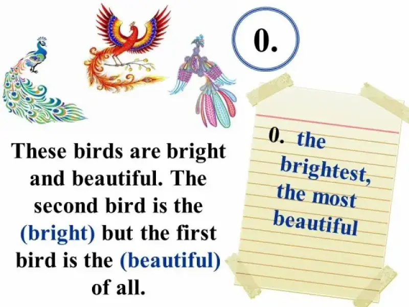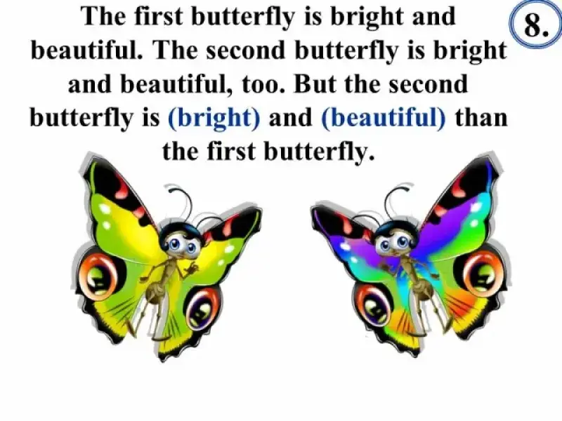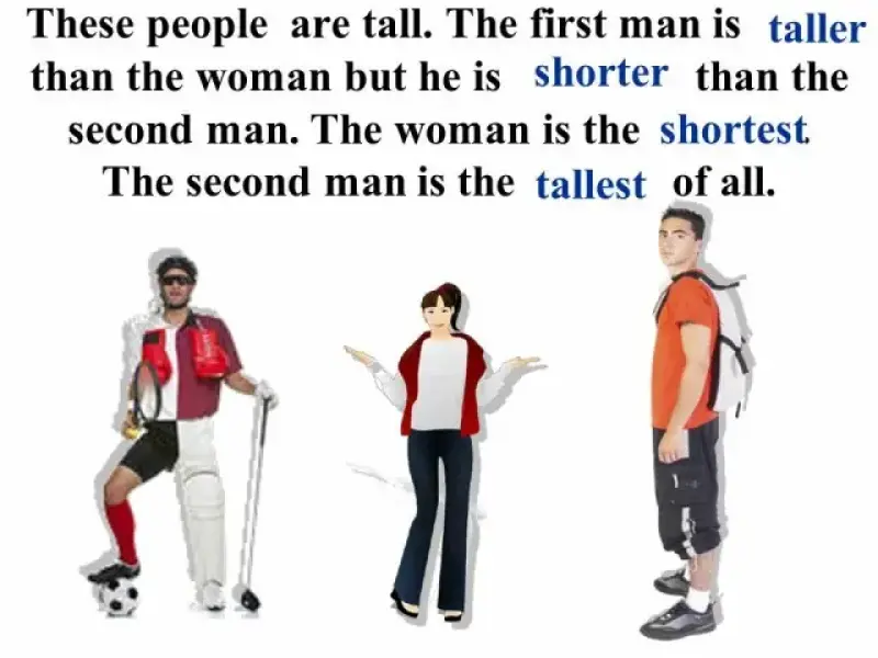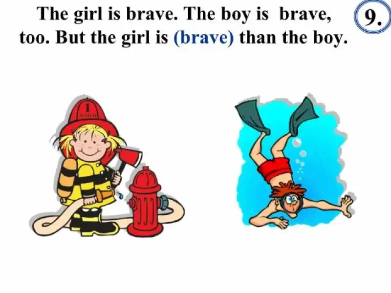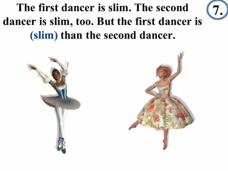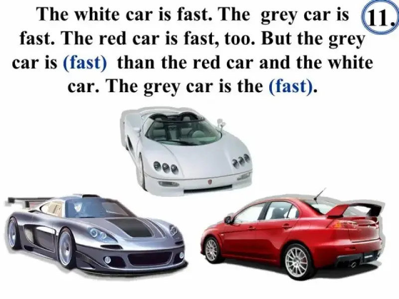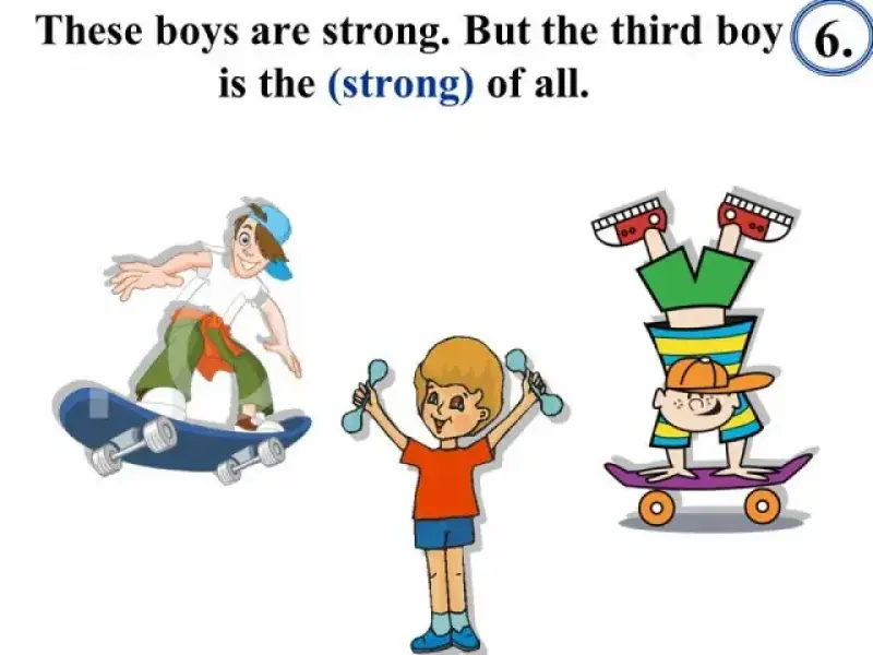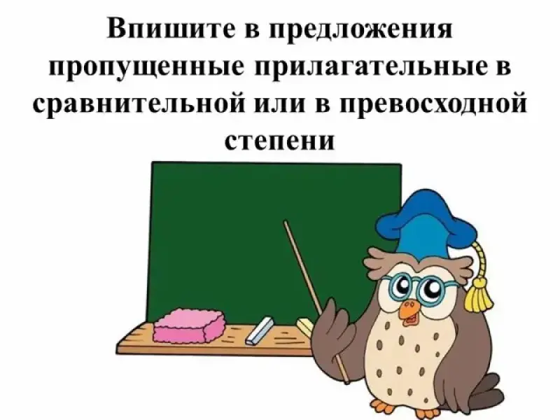 В тесте "Степени сравнения" (Презентация 3) сначала даются примеры употребления прилагательных в положительной, сравнительной и превосходной степенях, что позволяет вспомнить изученный материал, сформулировать правило, повторить исключения, и только затем приступить к выполнению грамматического теста.