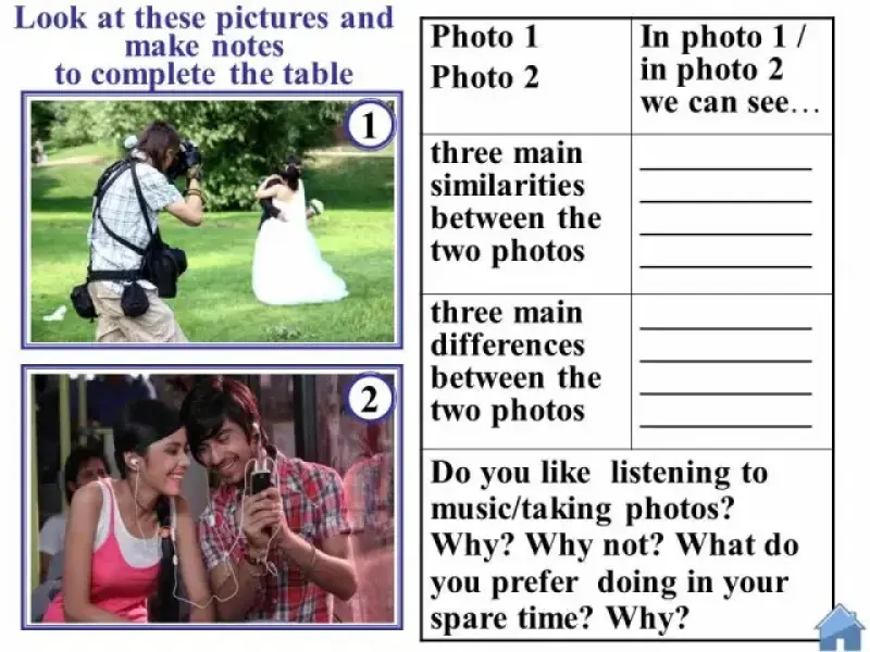 - Третье задание: учащиеся должны сравнить предложенные фотографии и найти сходства и различия.