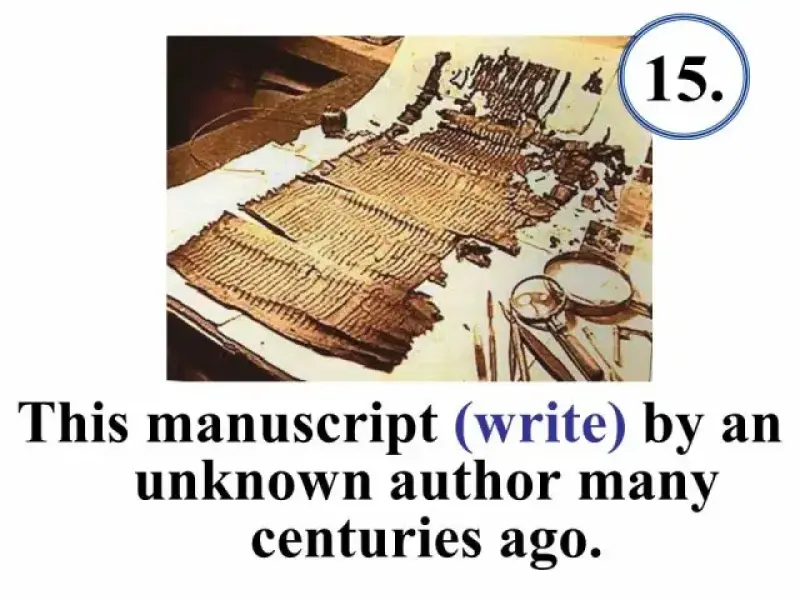 В тестах на Present Perfect (Презентация 2) и Passive Voice (Презентация 5) учащимся предлагается сначала вспомнить и написать три формы неправильных глаголов. Количество предлагаемых неправильных глаголов может меняться по усмотрению учителя.