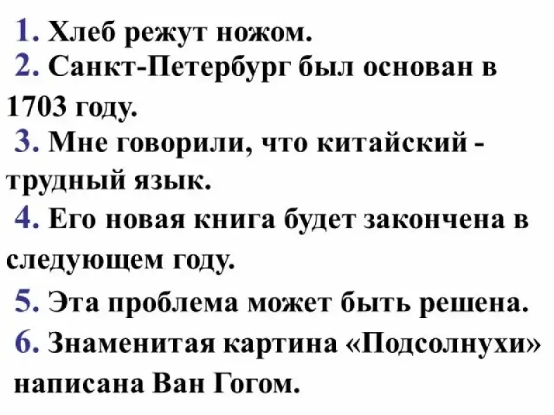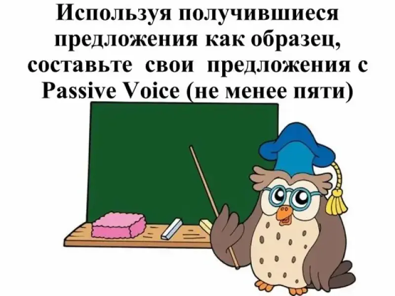 В тесте на Passive Voice (Презентация 5) помимо грамматических есть два задания, направленных на развитие разговорных навыков: перевести предложения с русского на английский и, используя получившиеся предложения как образец, составить свои предложения.