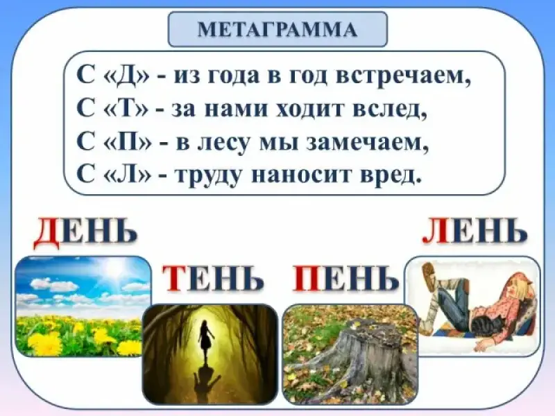 (День-тень-пень-лень)