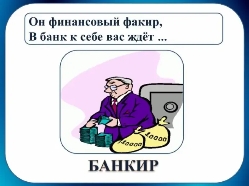 В банк к себе вас ждёт ... (банкир)