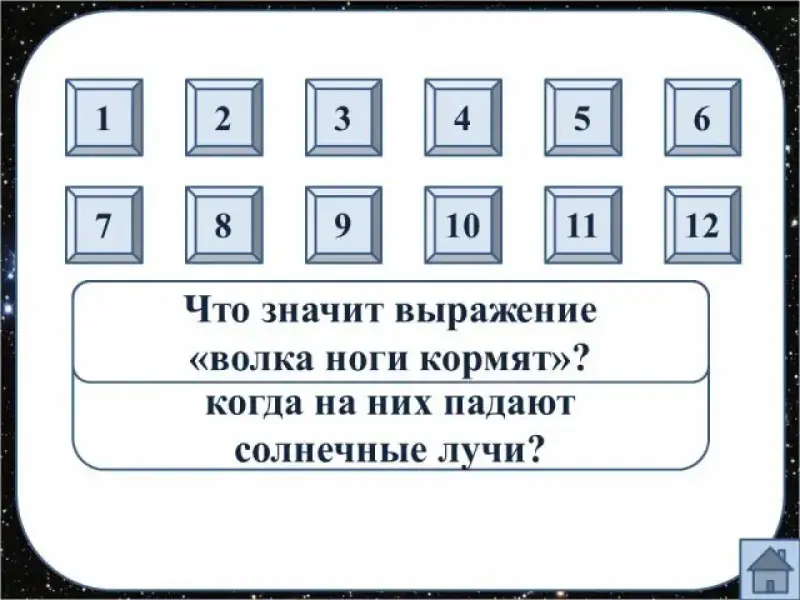 Я буду задавать вопросы, а вам нужно быстро на них отвечать. (Вопросы на слайде можно выбирать в любом порядке. При нажатии на кнопку, появляется вопрос, а цифра подкрашивается красным. При повторном нажатии - вопрос и цифра на кнопке исчезают.)