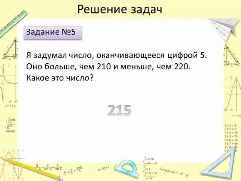 Я задумал число, оканчивающееся цифрой 5. Оно больше, чем 210 и меньше, чем 220. Какое это число?