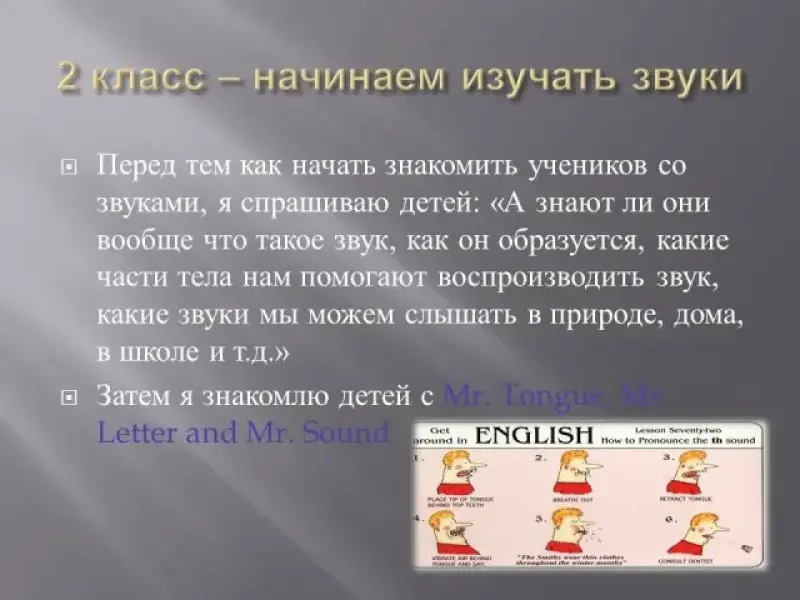 жизни. Какие органы участвуют в произнесении того или иного звука?" Проводим аналогию с русским языком - что все буквы как в русском так и в английском языке дают какие-нибудь звуки. То есть