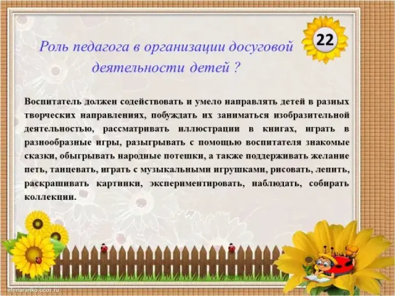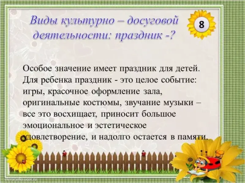 Педагогу важно найти такой баланс между самостоятельной активностью детей и педагогически организованным досугом, чтобы мероприятия и праздники не становились самоцелью, органично вплетались в жизнь дошкольного учреждения.
