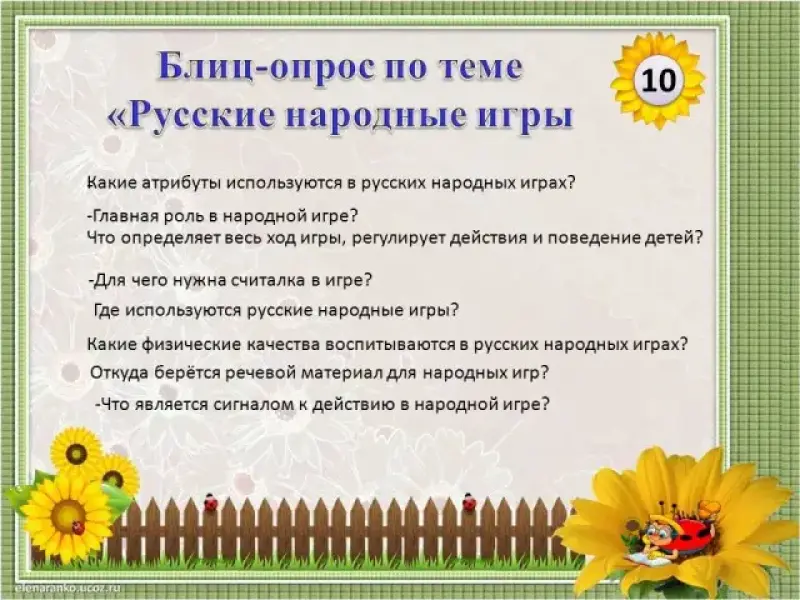 - Откуда берётся речевой материал для народных игр? (из народного фольклора)