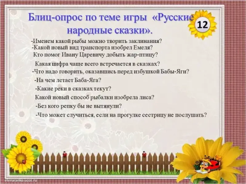 Давайте проведём блиц-опрос по теме "Русские народные игры" и "Русские народные сказки".