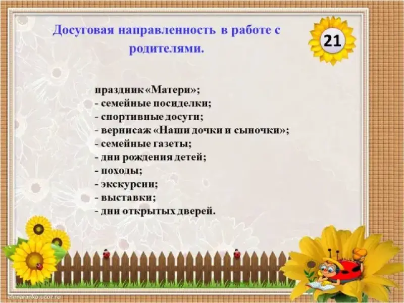 Досуги могут проводиться как для детей так же и совместно с родителями.