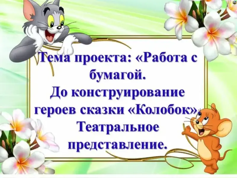 Творческий, ролевой, межпредметный мини-проект. Тема: «Работа с бумагой. Доконструирование героев сказки Колобок. Театральное представление». Монопроект: книга «Колобок» (русская народная сказка)