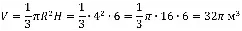 № 2. Объем конуса с радиусом основания 4м и высотой 6 м равен. /32 πм2/