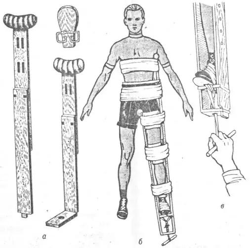 в - вытяжение конечности при помощи закрутки.