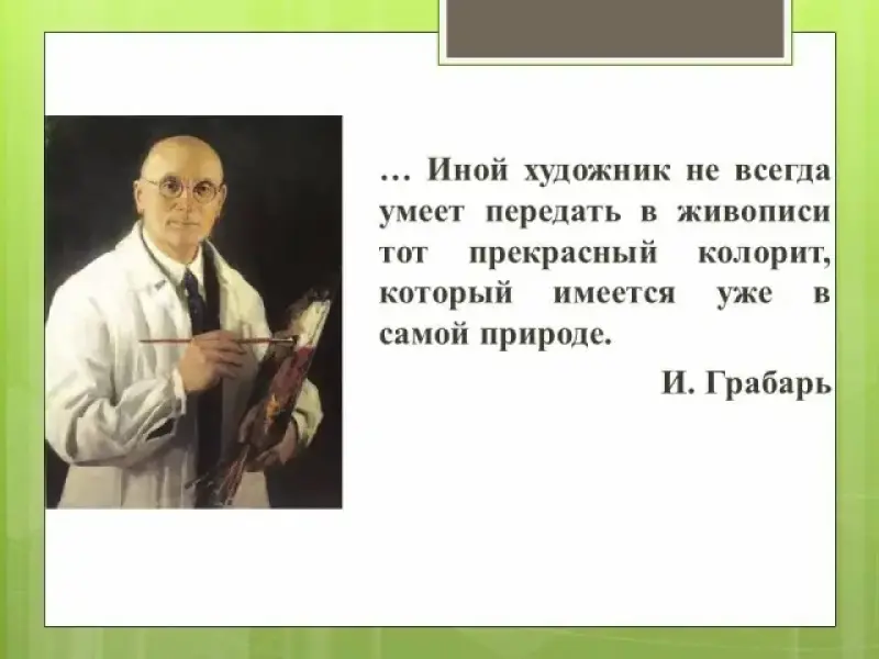 Как вы понимаете слова Игоря Эммануиловича Грабаря, известно вам художника? Что такое колорит?