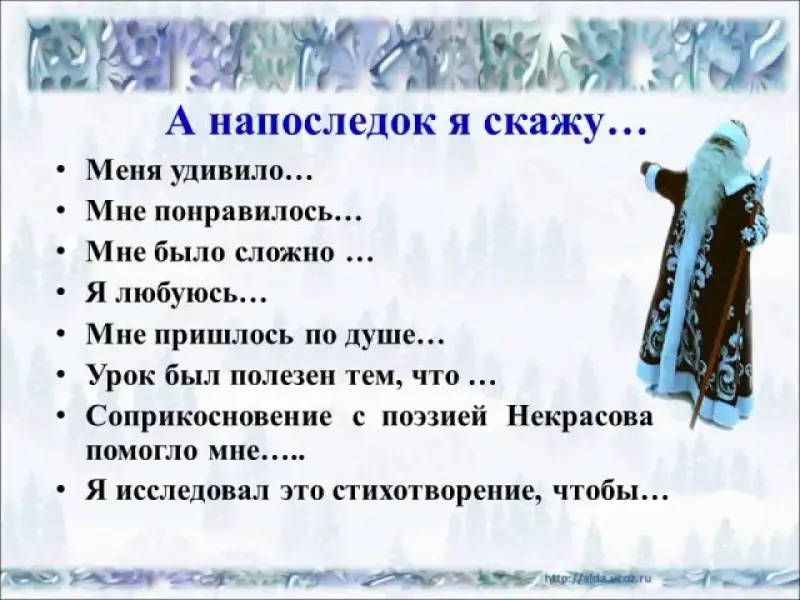 Урок литературного чтения “Н.Некрасов «Мороз, Красный нос». Сравнение со сказочным текстом”