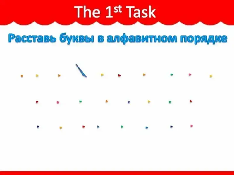 Ход игры: на слайде представлены буквы в произвольном порядке. Нужно расставить их в правильной последовательности. (Слайды 32-33)