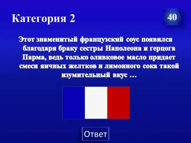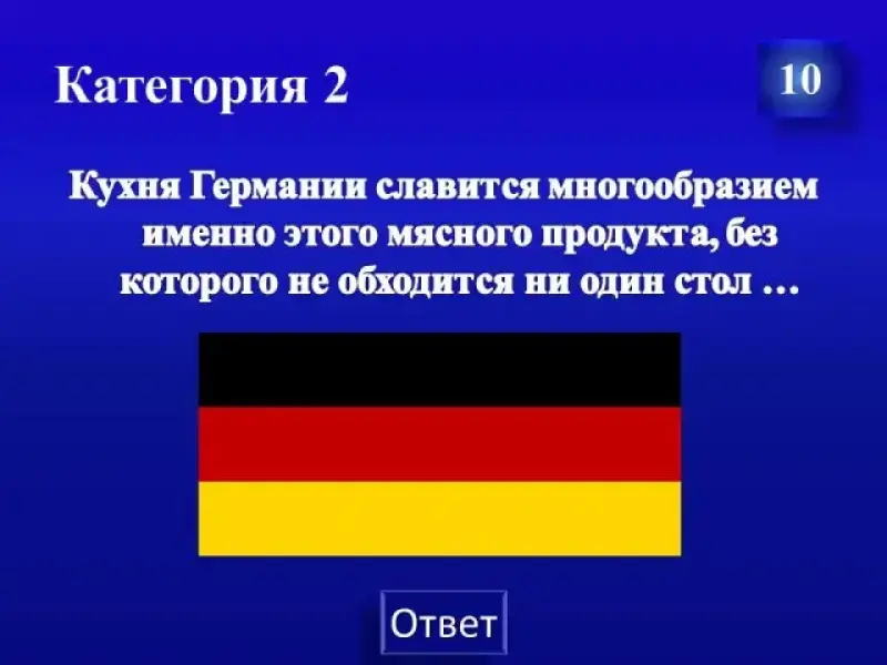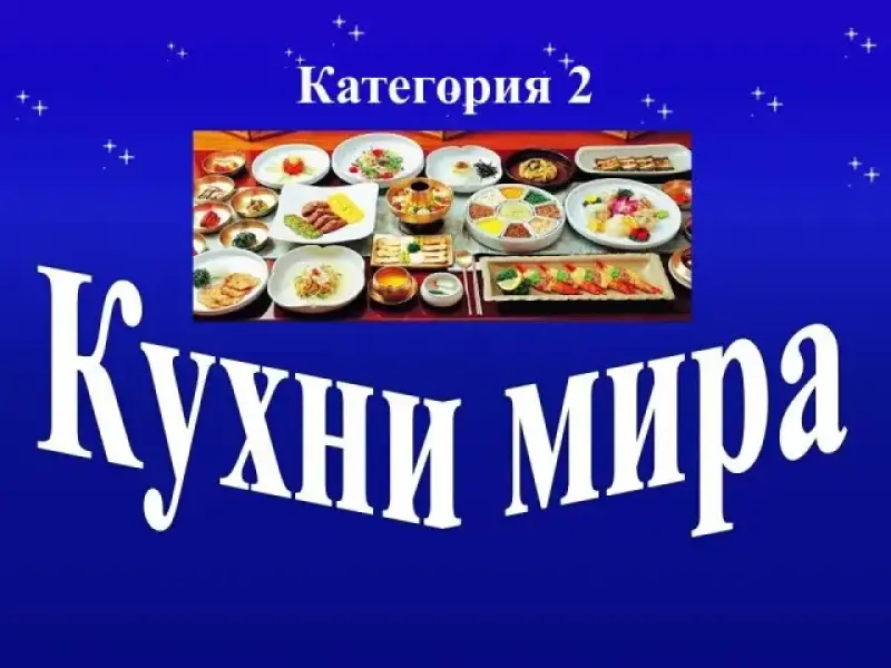 | Кухни мира | 10 | 20 | 30 | 40 | 50 |