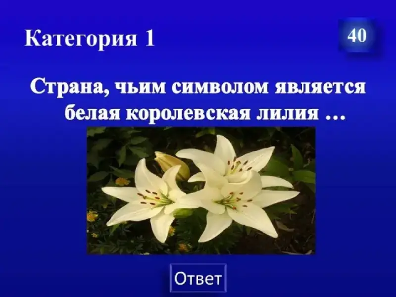 Страна, чьим символом является белая королевская лилия ...