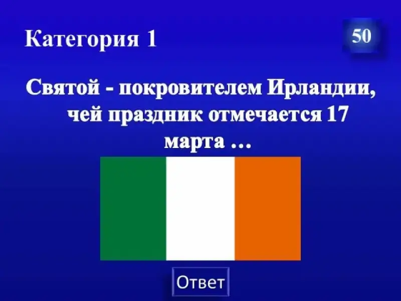 Святой - покровитель Ирландии, чей праздник отмечается 17 марта?