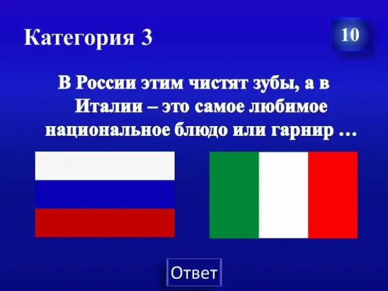 В России так называется средство, которым чистят зубы, а в Италии - это самое любимое национальное блюдо или гарнир ...