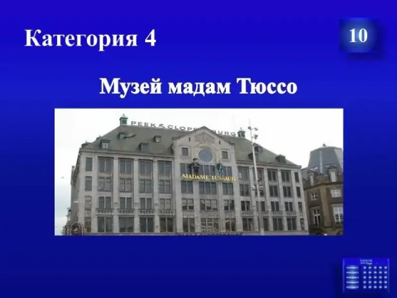 | Музеи мира | 10 | 20 | 30 | 40 | 50 |