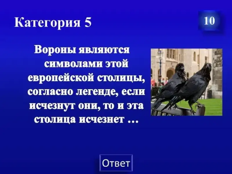 Вороны являются символами этой европейской столицы, согласно легенде, если исчезнут они, то и эта столица исчезнет ...
