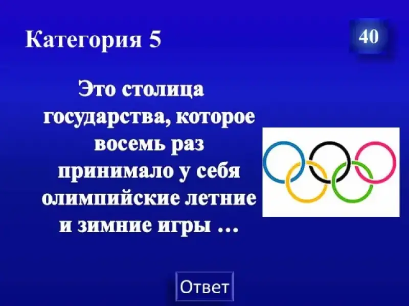 Эта столица государства, которое восемь раз принимало у себя олимпийские летние и зимние игры ...