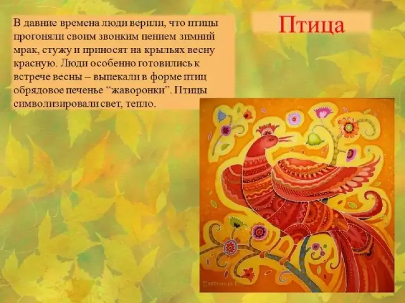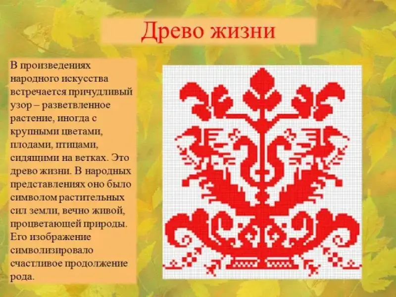 Беседа с учащимися на тему "Что мы узнали на прошлых уроках о народном искусстве и древних образах", параллельный просмотр таблицы <Рисунок 1> и презентации.