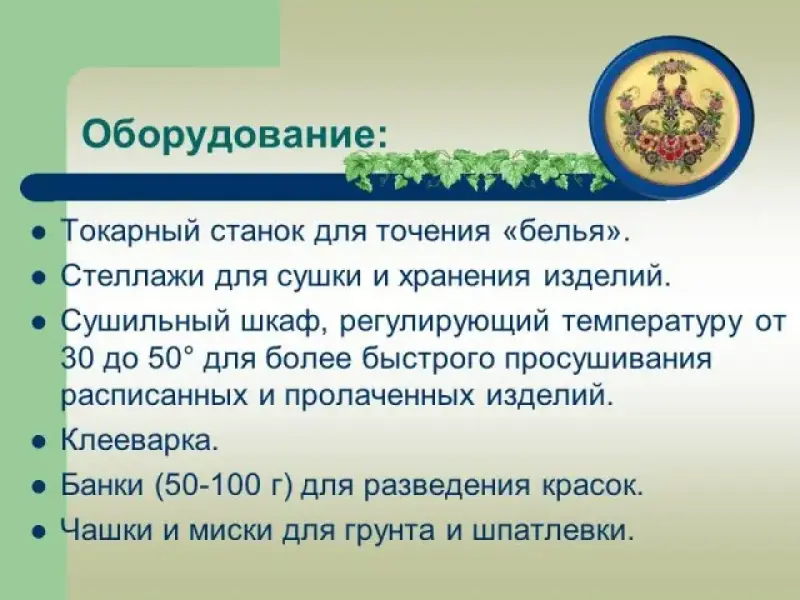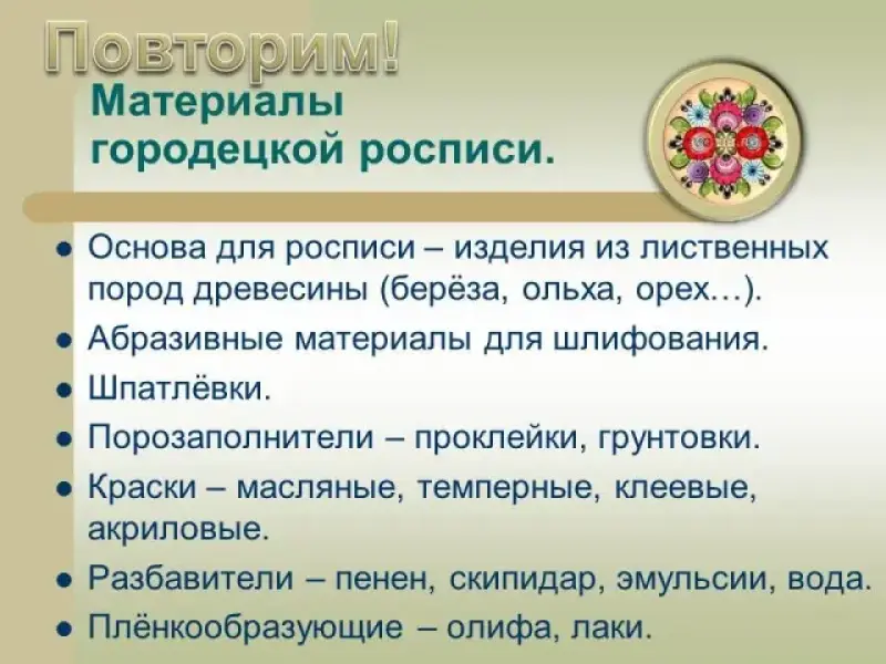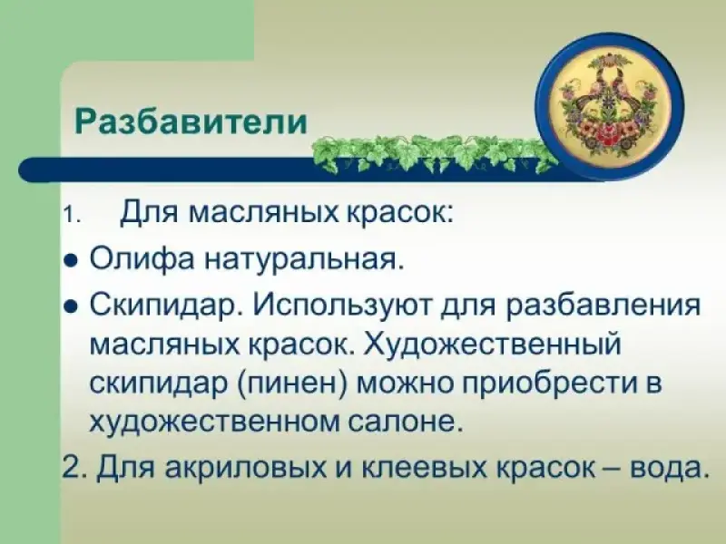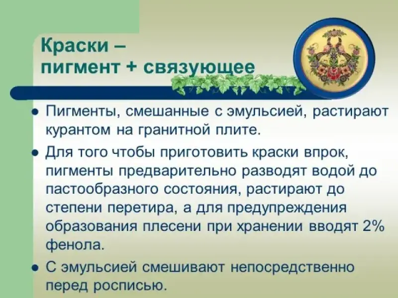 - Физические и химические свойства материалов, применяемых при изготовлении изделий ДПИ (роспись по дереву).