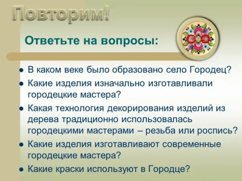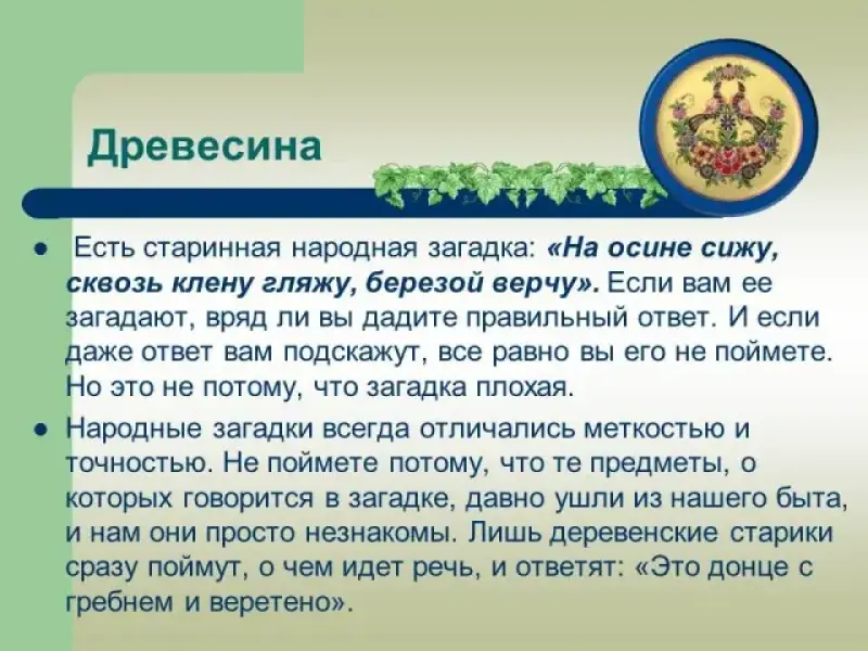 - Выявить уровень освоения теоретической базы и уровень практических навыков в области изучаемой дисциплины, изделий из дерева (роспись, резьба).
