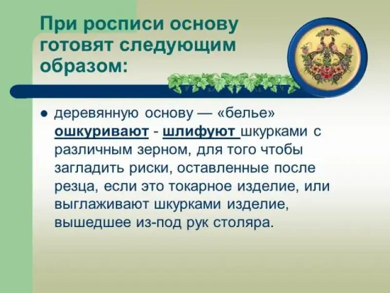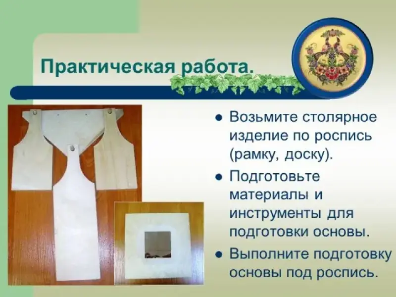 - Технологический процесс исполнения изделий ДПИ (роспись по дереву).