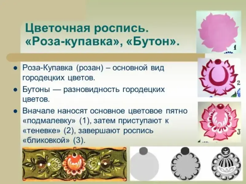 - Копирования и варьирования исторических и современных образцов декоративно-прикладного искусства (роспись и резьба по дереву). При копировании оптимально подбирать инструменты, материалы и технологические приёмы.