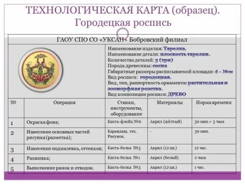 - Специфику профессионального материального воплощения авторских проектов изделий ДПИ (роспись по дереву).