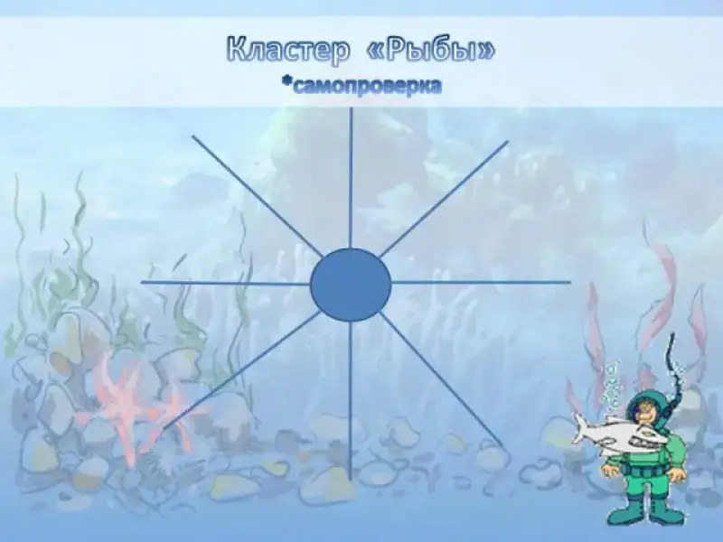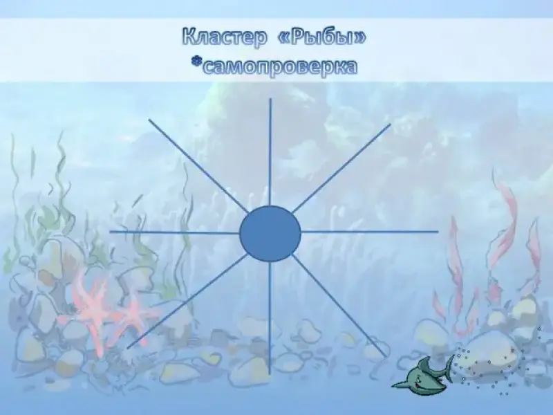 * Заполнение кластера "Рыбы" (синим цветом). Индивидуальная работа, выявление знаний учащихся по данной теме. (Слайд 5)