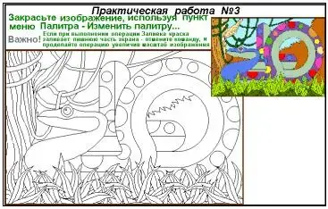 Набор инструментов: заливка, выбор цветов. Палитра. Работа с готовой раскраской | 3 |