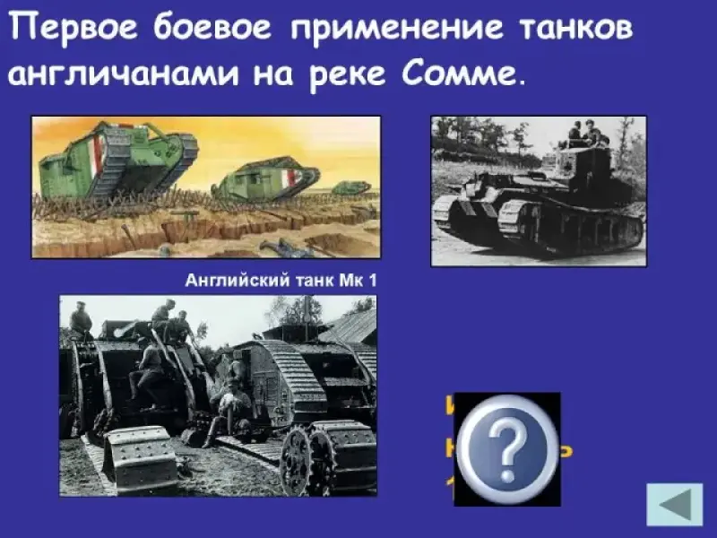 4. Первое боевое применение танков англичанами на реке Сомме. (июль-ноябрь 1916 г)