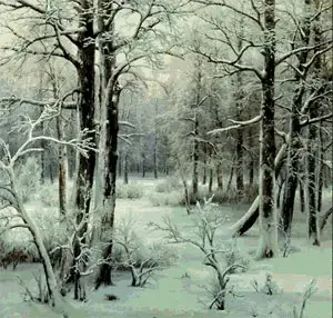 С.Т. Аксаков. Очерк зимнего дня В 1813 году с самого Николина дня установились трескучие декабрьские морозы, особенно с зимних поворотов, когда по народному выражению солнышко пошло на лето, а зима на мороз. Стужа росла с каждым днем, а 29 декабря ртуть застыла и опустилась в стеклянный шар... ... Великолепен был вид зимней природы. Мороз выжал влажность из древесных сучьев и стволов, и кусты и деревья, даже камыши и высокие травы опушились блестящим инеем, по которому безвредно скользили солнечные лучи, осыпая их только холодным блеском алмазных огней... |
