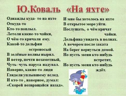 Перед вами лежит стихотворение. Автор Юрий Коваль «На яхте» (СТРОЧКУ ПРОПУСТИТЬ ДЛЯ ТЕМЫ!) Однажды куда-то на яхте