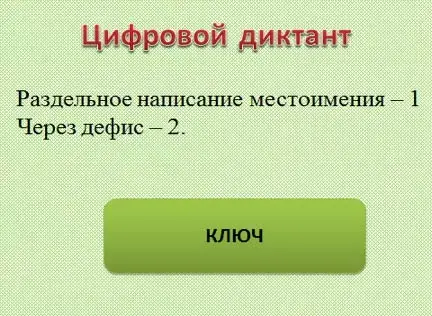 - Объяснение правописания неопределенных местоимений. 3. Цифровой диктант СЛАЙД 17-18 Раздельное написание местоимения - 1, через дефис - 2.