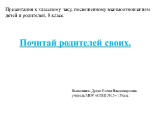Сценарий классного часа, посвященного взаимоотношениям детей и родителей, "Почитай родителей своих". 8-й класс