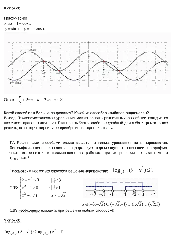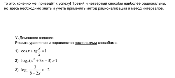 - обобщить методы решения уравнений (тригонометрических) и неравенств (логарифмических);