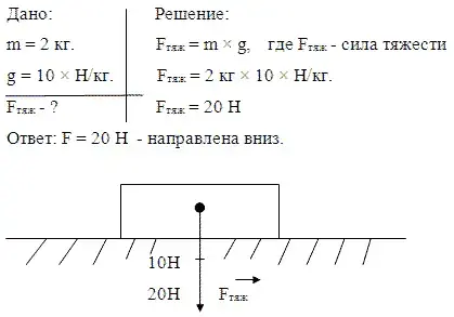 Вычислить силу тяжести, действующую на тело массой 2 кг. Изобразить эту силу графически на чертеже в масштабе 10 Н / 1 см.