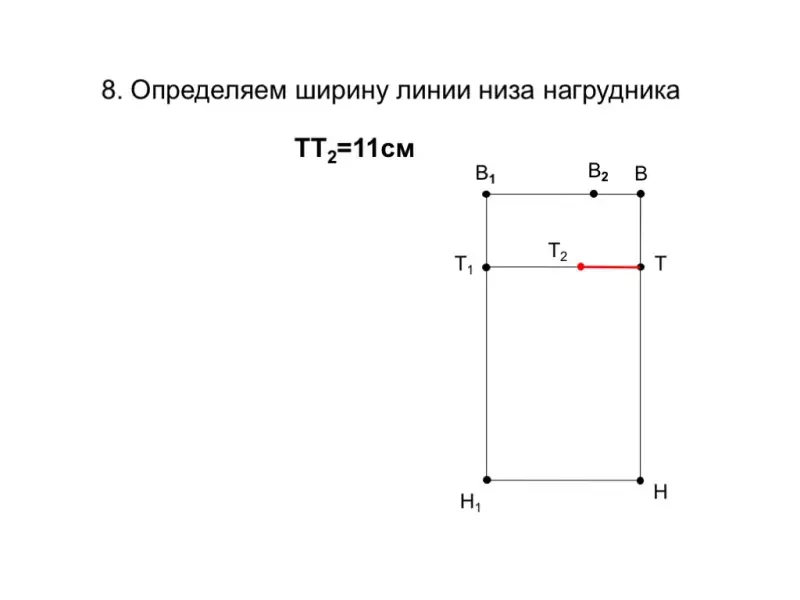 Нагрудник: ВТ = 15 см. ВВ2 = 9 см. ТТ2 = 11 см.