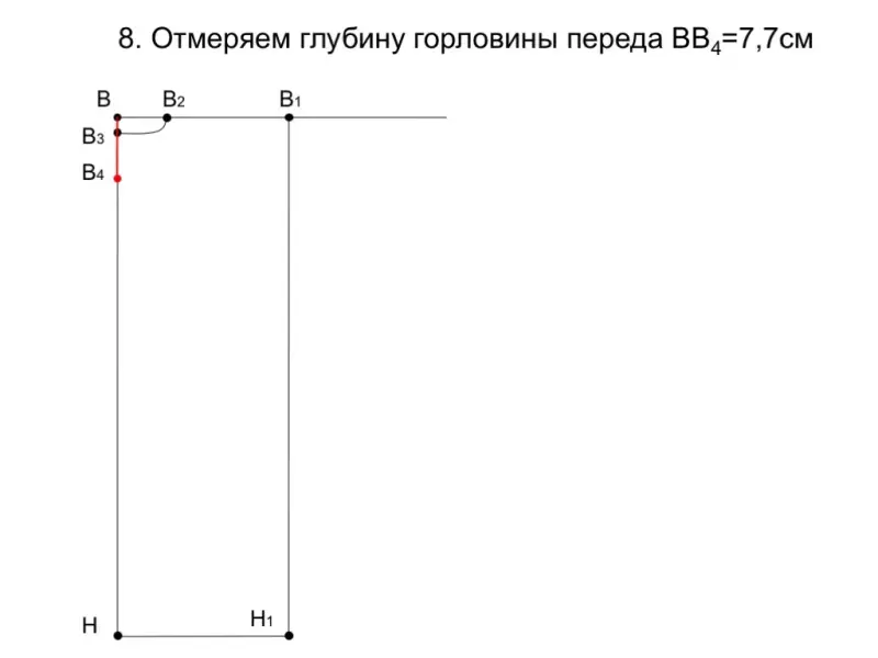 Отличие состоит в том, что вырез горловины у переда глубже, чем у спинки. Основными контурными срезами являются: линия горловины переда и спинки, боковой срез, линия низа, линия плеча, срез рукава, середина детали.