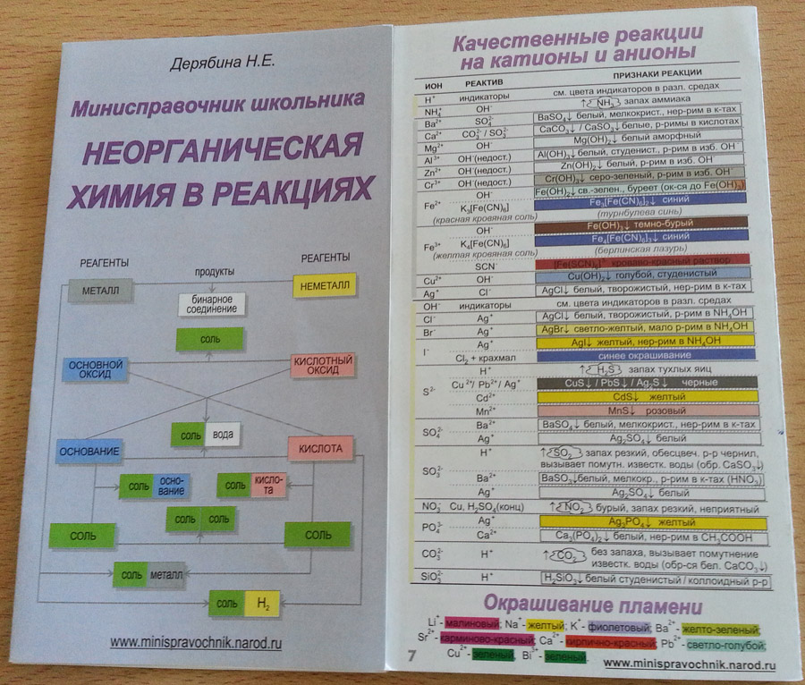 - Н.Е. Дерябина мини-справочник школьника "Неорганическая химия в реакциях"