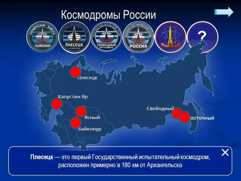 Ведущий 2: Космодромов в мире насчитывается более двух десятков. Команды должны определить названия стран, в которых находятся космодромы? <Приложение 1>