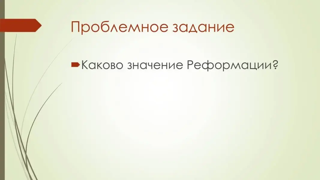 Записывается тема урока и проблемное задание "Каково значение Реформации?" (слайд 1 и 2)